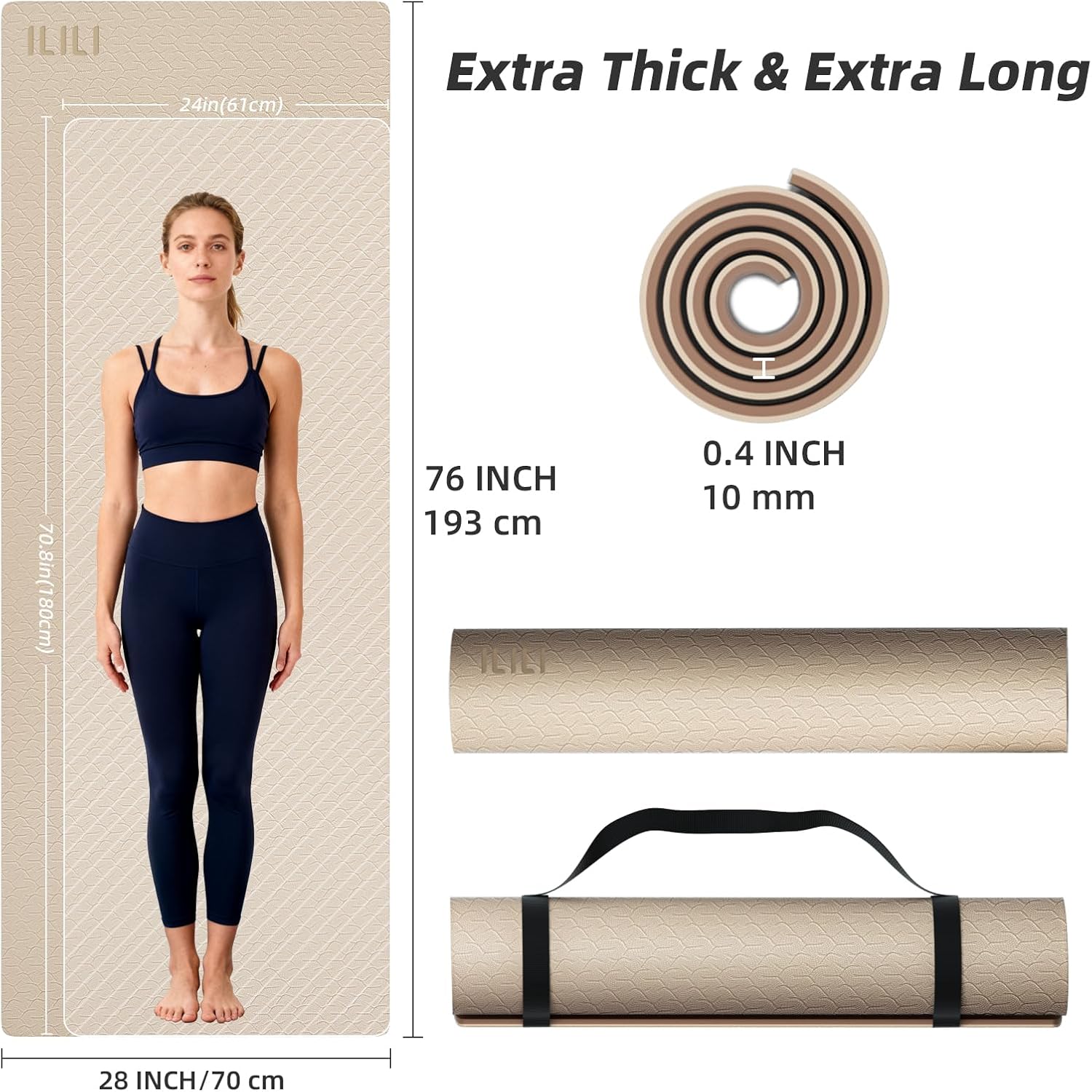 Portable Strap, Easy to Carry: ILILI thick yoga mat comes with a convenient back strap, allowing you to carry it anywhere, lightweight and easy to store. You can simply roll the fitness mat up and use our carrying strap to take it to the gym, office, or home. It is also suitable for use during outdoor hiking and camping