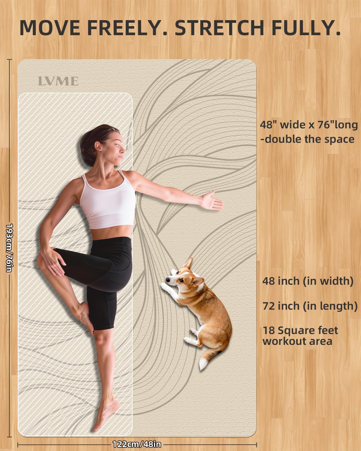 𝐄𝐱𝐭𝐫𝐚-𝐋𝐚𝐫𝐠𝐞 𝐃𝐢𝐦𝐞𝐧𝐬𝐢𝐨𝐧𝐬 (75″ x48″) 𝐟𝐨𝐫 𝐔𝐧𝐫𝐞𝐬𝐭𝐫𝐢𝐜𝐭𝐞𝐝 𝐅𝐢𝐭𝐧𝐞𝐬𝐬 – Provides ample space for tall users and diverse activities like yoga, Pilates, stretching, foam rolling, and bodyweight training, ensuring you never feel confined during workouts.