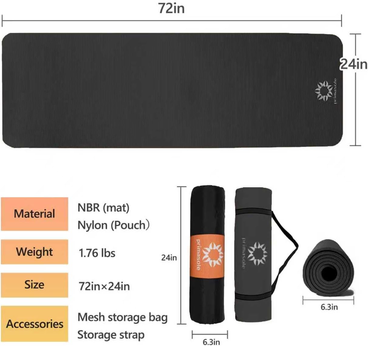 【SIZE & LIGHTWEIGHT】: Mats Size is 72 × 24 inches. Super light weight is only 1.8 lbs. ½ extra thick (10㎜) extra cushion provides comfort stability and Posing. Perfect mats for hard floor or carpet at home and gym. It is more suitable for people with sensitive or injured joints. NBR Material is a non-toxic synthetic rubber material and provide soft, cushioning. 72 inch is large enough to do most of exercises