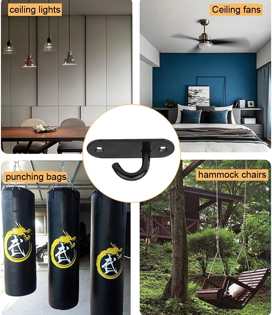 Wide Application— Suitable for installation in wood ceilings, cement ceilings, brick walls, ceramic tile walls. Our pad eye ceiling hooks perfect for various kinds of buckles, quick links and ropes. Mainly used in hammock chairs, porch swings, yoga swing, punching bags or small yachts and boats, also be used hanging bird feeders, lanterns, planters, flower pots, holiday decorations, string lights, wind chimes, ornaments etc.